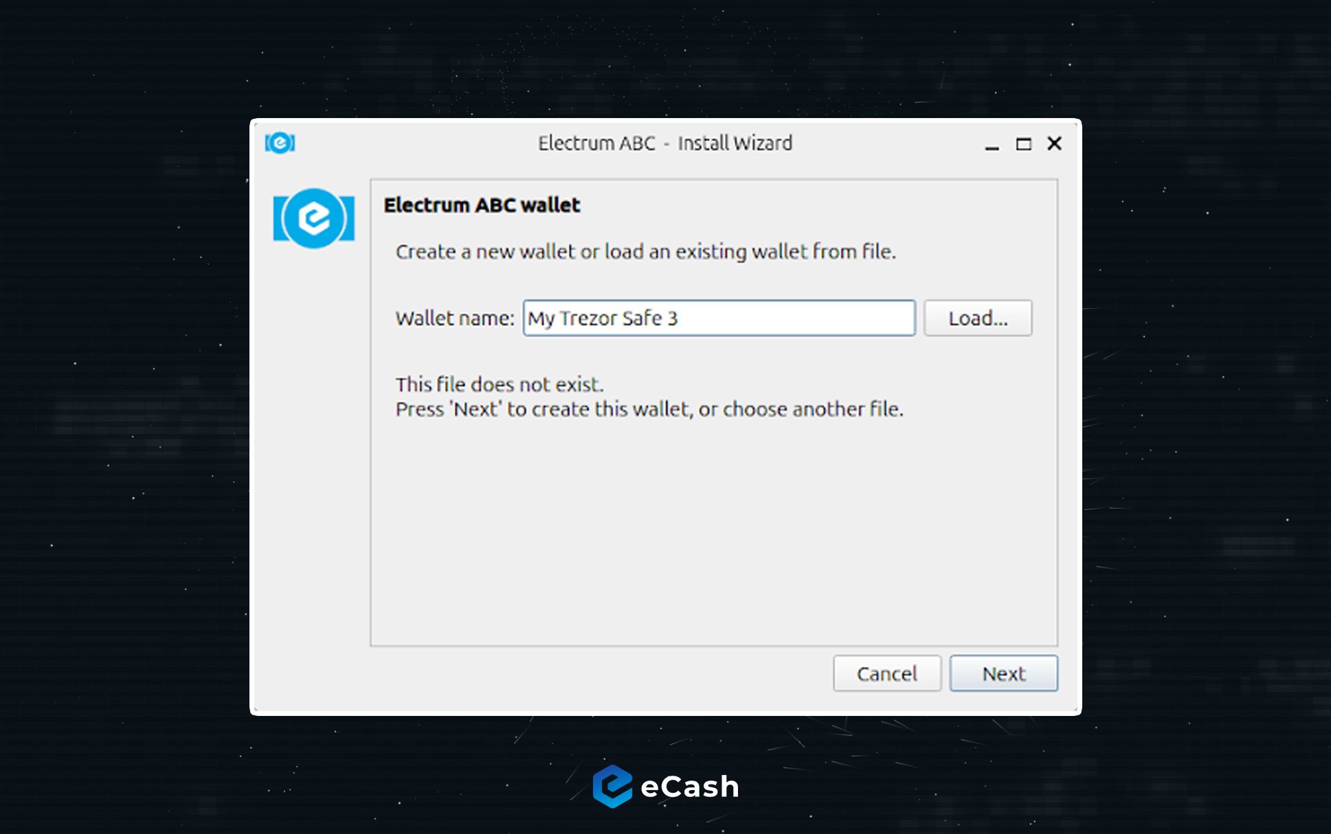 - Create a new wallet in Electrum ABC with Trezor connected as explained in the guide above. Make sure you’re using eCash’s m/44'/899'/0' derivation path.