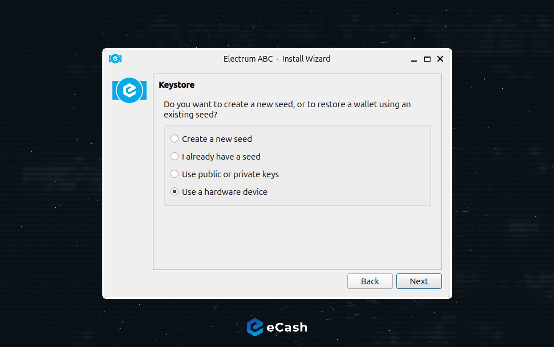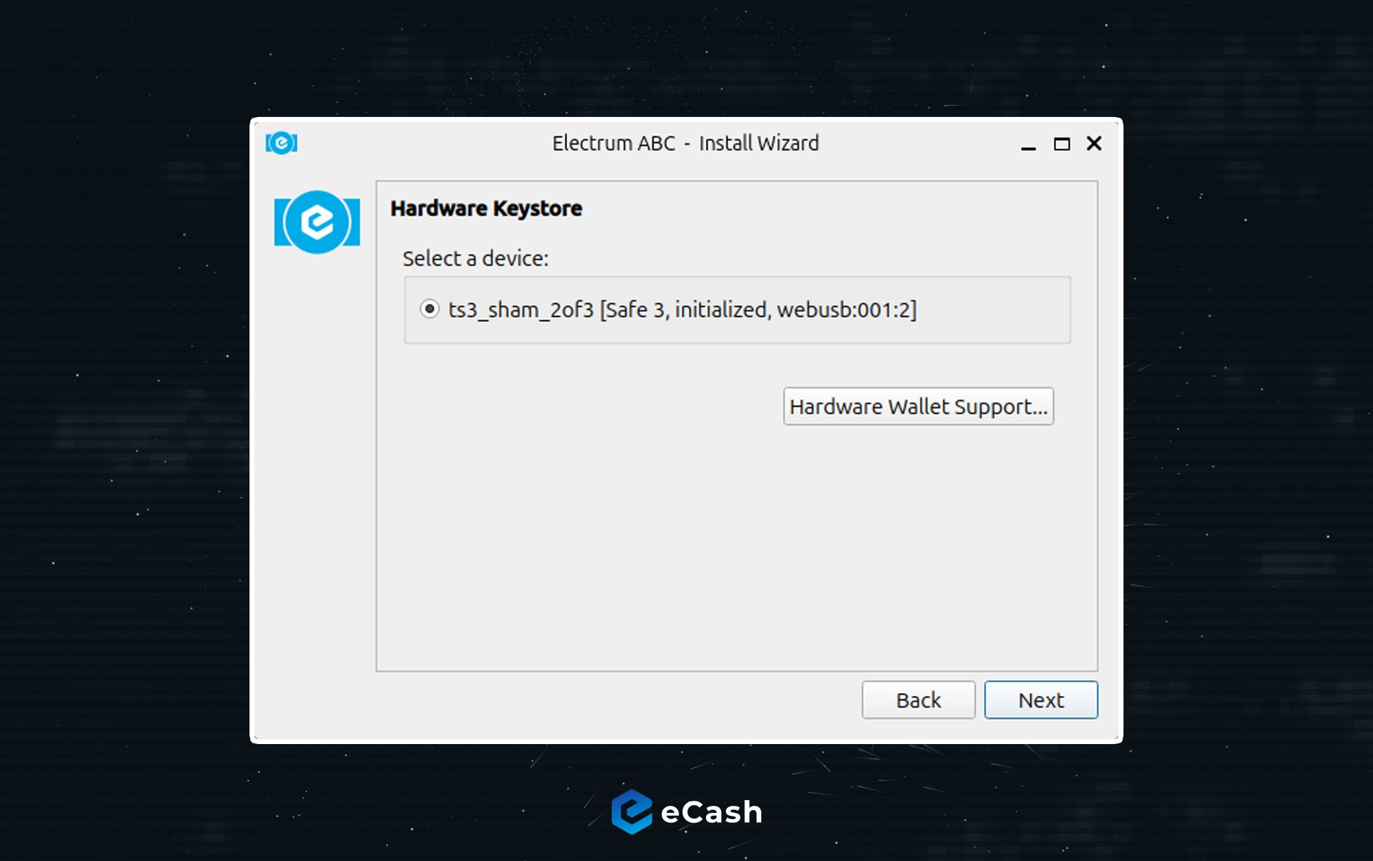 Existing Trezor wallets created earlier via the workaround method continue to function as always. Suppose you have your eCash stored on a Trezor via this method and want to switch to a new eCash native wallet. In that case, you can do so by creating a new Trezor wallet via Electrum ABC (version 5.4.0 or higher) and transferring your coins from the old workaround wallet to the new eCash native wallet with a normal on-chain transaction.